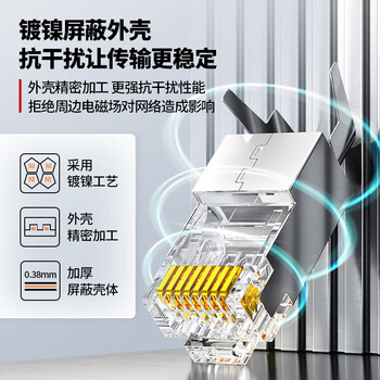 安普康(AMPCOM)千兆六类屏蔽网线水晶头 50U铜壳RJ45镀金1.3孔径8P8C电脑CAT6类燕尾夹网络连接头10个AMC65010H