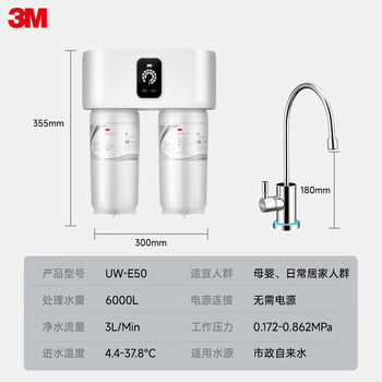 3M净水器家用净水机0废水矿物质智能直饮3L/分大流量6000升处理量1200G过滤器UW-E50