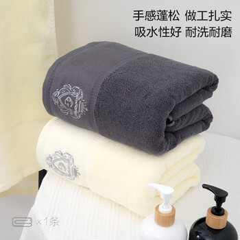 洁丽雅(Grace)纯棉抗菌防螨浴巾刺绣高档强吸水男女士加厚加大浴巾全棉 800g