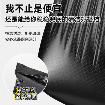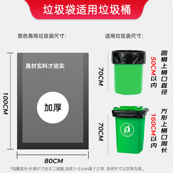 简丫平口垃圾袋黑色80x100cm50只1.3丝加大加厚款商用酒店物业塑料袋