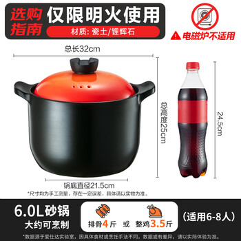 爱仕达(ASD)砂锅煲汤石锅燃气灶家用耐高温不易裂6L中药锅陶瓷煲RXC60B3Q