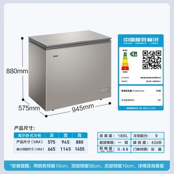 海尔(Haier)180升彩晶风冷家用冰柜 冷藏冷冻小冰柜家用小型冰箱冷柜BC/BD-180WEGU1