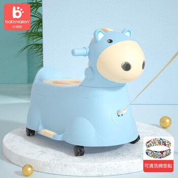 小哈伦儿童马桶宝宝坐便器婴幼儿尿盆小孩小便器万向轮刹车轮小马天空蓝