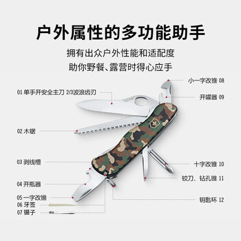 维氏瑞士军刀高山游侠111mm户外刀具折叠刀防身小刀0.8463.MW94丛林彩