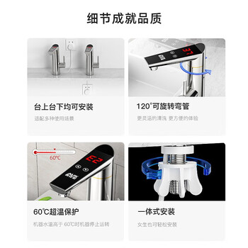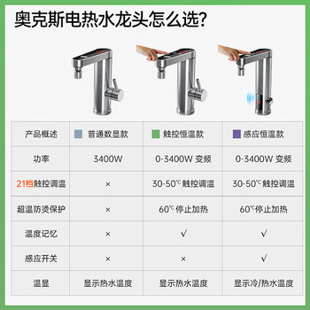 奥克斯(AUX)电热水龙头变频恒温卫浴面盆冷热两用变频恒温即热式速热快热厨房宝下进水带漏保WT不锈钢