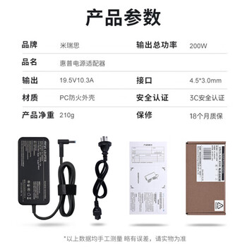 米瑞思(mryc)惠普暗影精灵笔记本充电器19.5V10.3A 200W通用hp暗夜4/5/6/9代电脑电源适配器线4.5*3.0蓝口带针