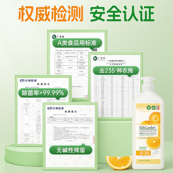 蔬果园橘彩洗洁精1.28kg果蔬清洗剂去油不伤手洗涤灵除菌食品用级餐具净