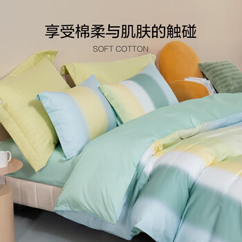 水星家纺四件套床上纯棉100%全棉透气床单被套双人1.8米x2米床倾城悦岚