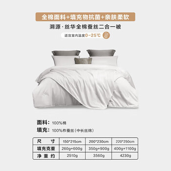 罗莱家纺 蚕丝被子 100%全棉蚕丝二合一子母被四季通用被芯 8.5斤