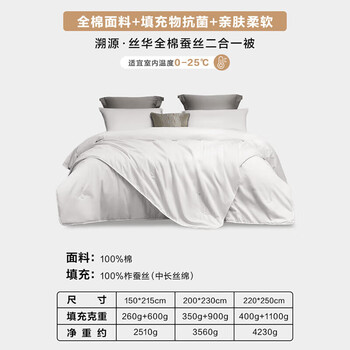 罗莱家纺 蚕丝被子 100%全棉蚕丝二合一子母被四季通用被芯5.0斤