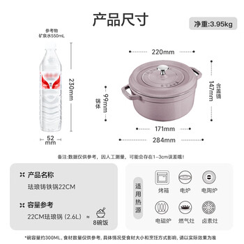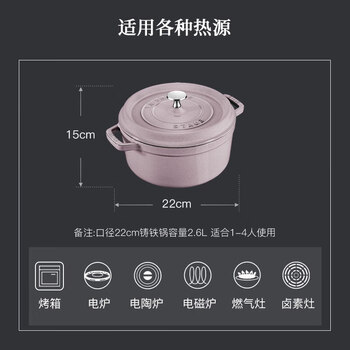 珐宝(staub)法国进口珐琅铸铁锅夜樱粉22cm汤锅炖锅煮锅 双耳煲汤锅 1021920