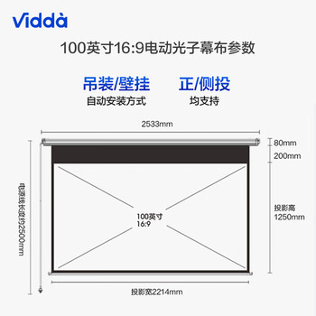 Vidda 映画100吋光子电动幕布 专业适配三色激光投影 电动遥控抗卷边更耐用 海信C3/C2系列/M2 Pro可用