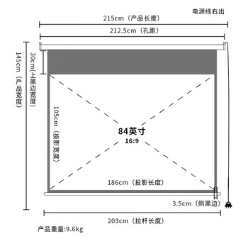 得力(deli)84英寸16:9遥控电动投影幕布加长黑边50474(适配坚果极米当贝小米投影机 投影机投影仪幕布)