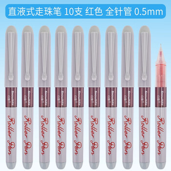白雪(snowhite)R60双子星直液式走珠笔简约学生用考试专用水笔速干针管型型商务办公签字笔中性笔红色10支