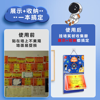 法拉蒙 奖状收集册a4大号可挂墙儿童证书收纳册小学生收藏相册荣誉证书册 A4中号/宇航员/装80张(送挂钩)