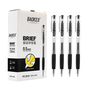 宝克(BAOKE)PC5018按动中性笔签字笔子弹头0.5mm学生简约水笔 黑色 24支/盒