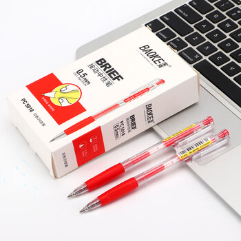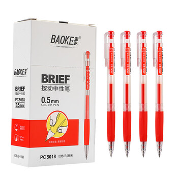 宝克(BAOKE)PC5018按动中性笔签字笔子弹头0.5mm学生简约水笔 红色 24支/盒