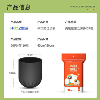 惠造平口小垃圾袋黑色45x50cm500只0.75丝厚中号商用办公物业酒店批发