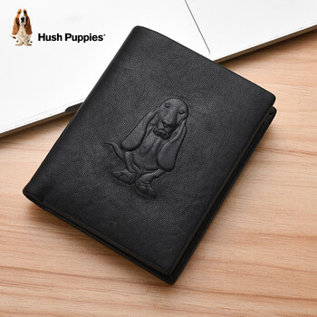 暇步士(Hush Puppies)钱包男士头层牛皮真皮短款休闲简约钱包送男友 礼盒装生日礼物