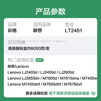 彩格适用联想m7400pro硒鼓m7605d硒鼓lt2451h墨盒m7450fpro m7615dna lj2405d 2605dn m7675 7655 7455打印机墨盒