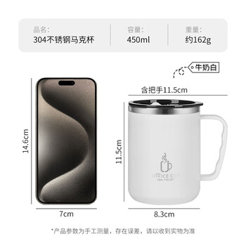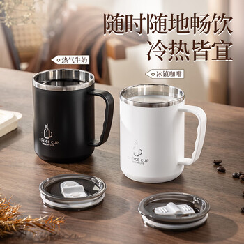 彩致(CAIZHI)304不锈钢马克杯带盖办公室大容量咖啡杯男女学生水杯白色 CZ6649