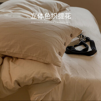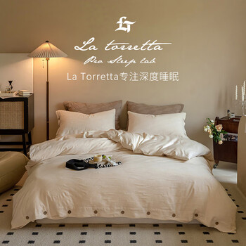 La Torretta120支长绒棉四件套纯棉肌理浮雕轻柔纱床上被套床单奶200*230cm