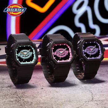 Dickies手表女学生潮酷情侣运动方表撞色黑玫红送女友礼物CL-318P1-14SY