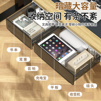 金隆兴桌底隐形抽屉式桌下收纳办公桌面文具整理盒学生书笔筒储物盒