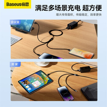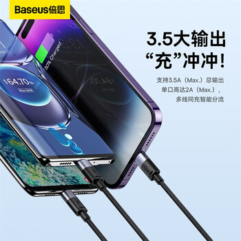 倍思 星速系列 一拖三快充数据线USB to M+L+C 3.5A 1.2m 黑色 *1