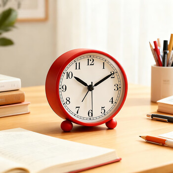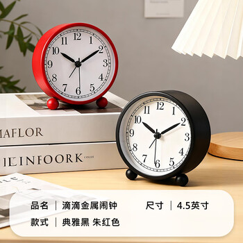 码仕闹钟创意儿童小闹钟简约夜光学生床头钟懒人电子钟小座钟 朱红色开学季礼物