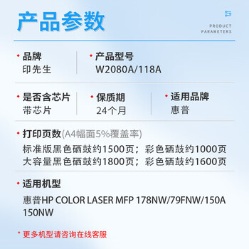 印先生适用惠普HP118A硒鼓W2080A打印机MFP 178nw 179fnw墨粉盒M150A/nw W2080A定影器