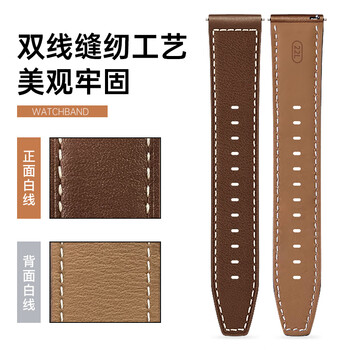 码仕适用华为手表表带真皮秋冬Watch5/4/3/GT6/5/gt4/3/2/Pro/荣耀Magic2运动男士腕带牛皮棕色22mm