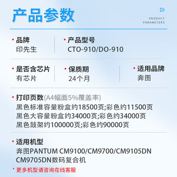 印先生CTO-910大容黑色粉盒 适用奔图CM9100 CM9700 CM9105DN CM9705DN打印机CTO-910XK硒鼓墨盒墨粉盒