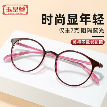 玉品堂防蓝光老花镜女日本进口高清老花眼镜男TR超轻花镜送妈妈7404正品