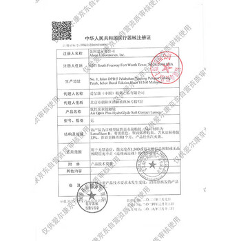 | 注册人或者备案人信息 | 美国爱尔康公司 |