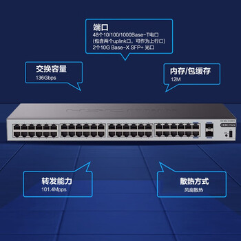 华三(H3C)48口千兆交换机+2万兆光口 企业级机架式 非网管交换器 网络网线分流器 S1250FX