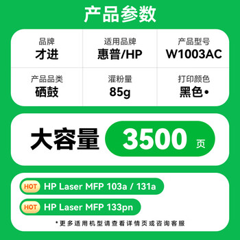 才进适用惠普103a硒鼓带芯片131a打印机硒鼓HP Laser MFP 133pn碳粉墨盒易加粉w1003ac激光复印一体机墨粉盒