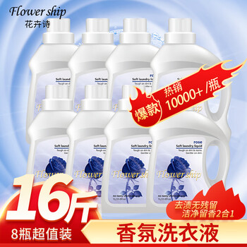 花卉诗(Flower ship)香氛洗衣液超值家庭装16斤(1kg*8瓶)深层去污洁净柔顺香味持久