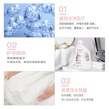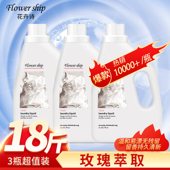 花卉诗(Flower ship)玫瑰植物香氛洗衣液18斤(3kg*3瓶)持久留香深层去渍低泡易漂洗