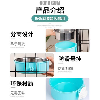 悠梵萌不锈钢猫碗狗碗防打翻喂水喂食可悬挂宠物食盆猫咪碗蓝色小号