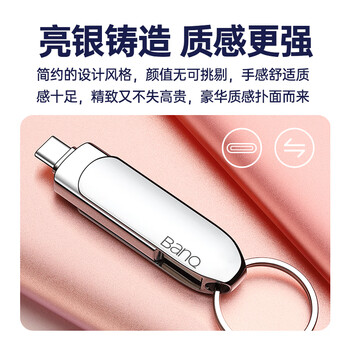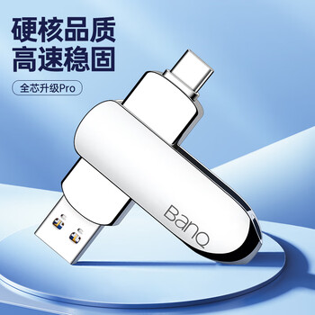 banq 256GB Type-C USB3.2 Gen1手机U盘 C90高速手机电脑两用双接口安卓苹果iPad平板Mac金属移动优盘