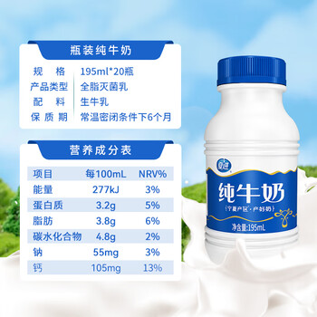夏进纯牛奶 195ml*20瓶宁夏塞上牧场奶源瓶装牛奶送礼整箱