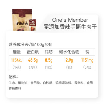 1号会员店手撕风干牛肉香辣味 休闲零食肉干肉脯 380g