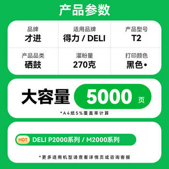 才进T2硒鼓适用得力M2000/DNW/NW/DW打印机墨盒M2000N/W/D/DN复印一体机晒鼓易加粉P2000/P2000N激光碳粉墨粉
