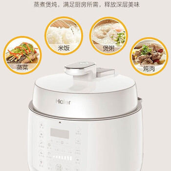 海尔(Haier)多功能家庭智能电压力锅 可智能预约蒸煮一机多用4-5L 双胆 PS-E5001Q1W (白色)
