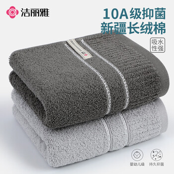洁丽雅10A级抗菌纯棉毛巾 柔软吸水新疆长绒棉洗脸巾2条装深灰+灰