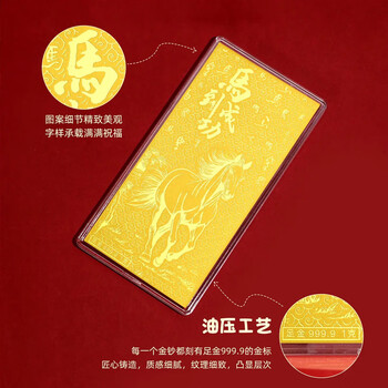 Lossot足金999.9马到成功金片生肖马年金钞黄金压岁钱生日礼物
