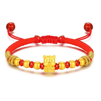 Lossot十二生肖马足金福马黄金转运珠手链5D硬金马本命年手链生日礼物