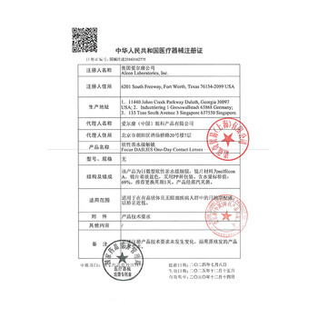 | 注册人或者备案人信息 | 美国爱尔康公司 |