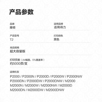 雅顿适用m2000dw硒鼓 得力t2硒鼓 m2000w打印机硒鼓 T2墨粉墨盒 P2000dw碳粉盒